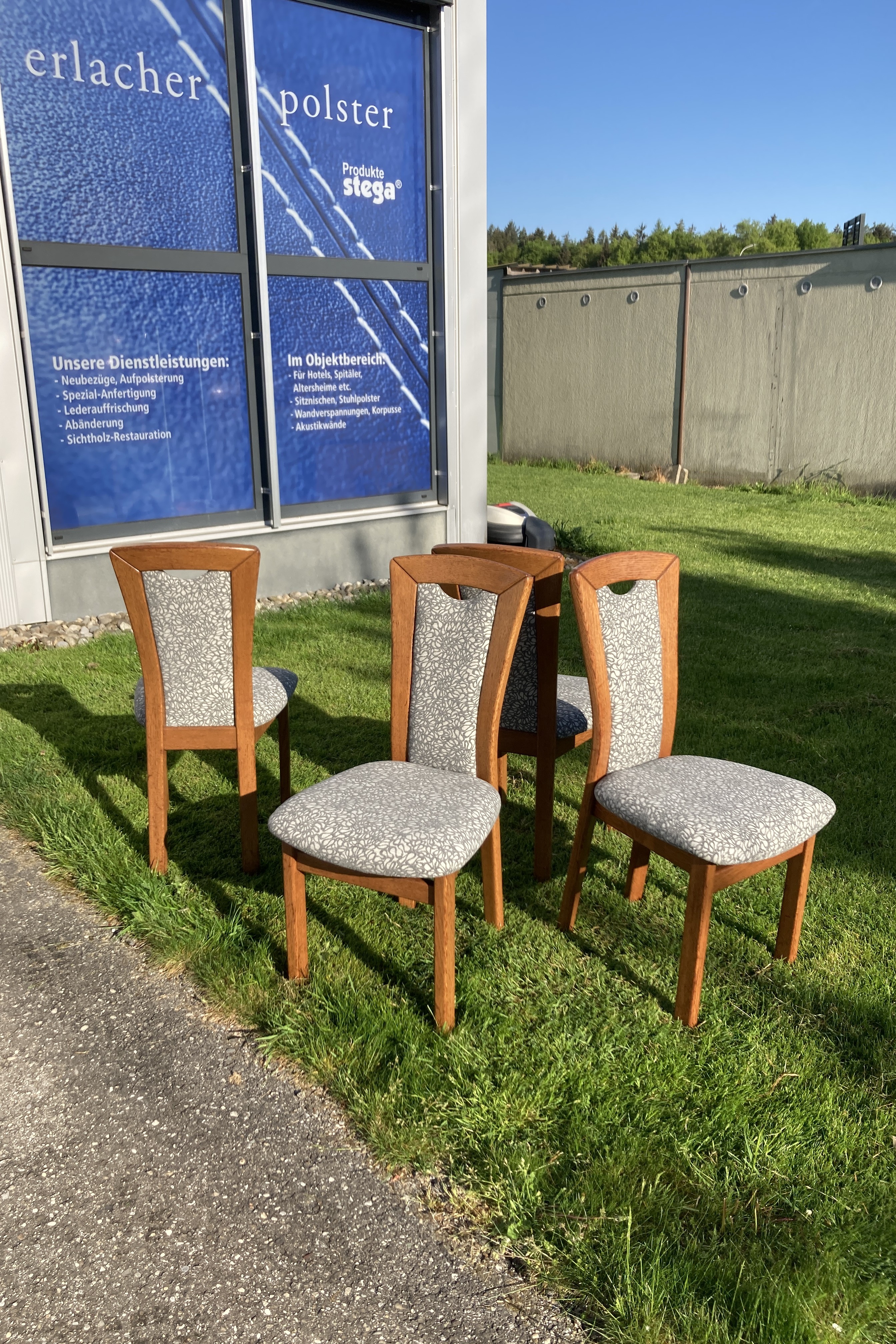 Diese Stühle durften wir für einen Kunden vom Fach erneuern. Es sind 10 Arona Sichtholzstühle von Girsberger AG, die wir für Girsberger AG früher auch produziert haben. Nun polstern und beziehen wir diese Stühle nur noch neu. Sie als Kunde wählen den neuen Bezug nach Lust und Laune frei aus... egal ob Stoff, Alcantara oder Leder - alles ist unabhängig von Hersteller, Designer und Lieferanten möglich. Schon ab CHF 39.-/Laufmeter bekommen Sie bei uns sehr gute Stoffe aus unserem Direktimport!