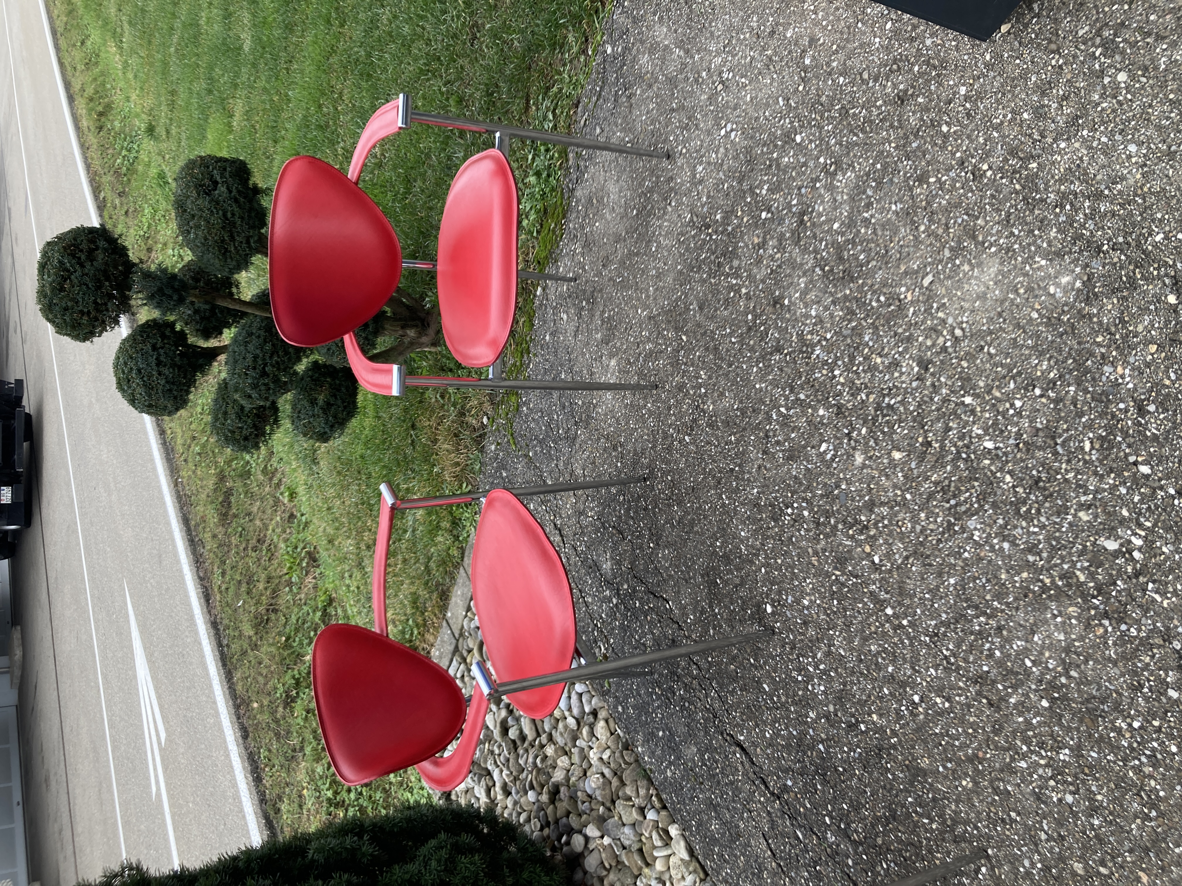 Für dieses Projekt haben wir 10 Arben Marylin Stühle mit hochwertigem, rotem Sattlerleder neu beziehen können. Die Wahl des Sattelleder sorgt für eine luxuriöse Optik und hervorragende Haltbarkeit, während die rote Farbe den Stühlen eine lebendige, moderne Ausstrahlung verleiht.