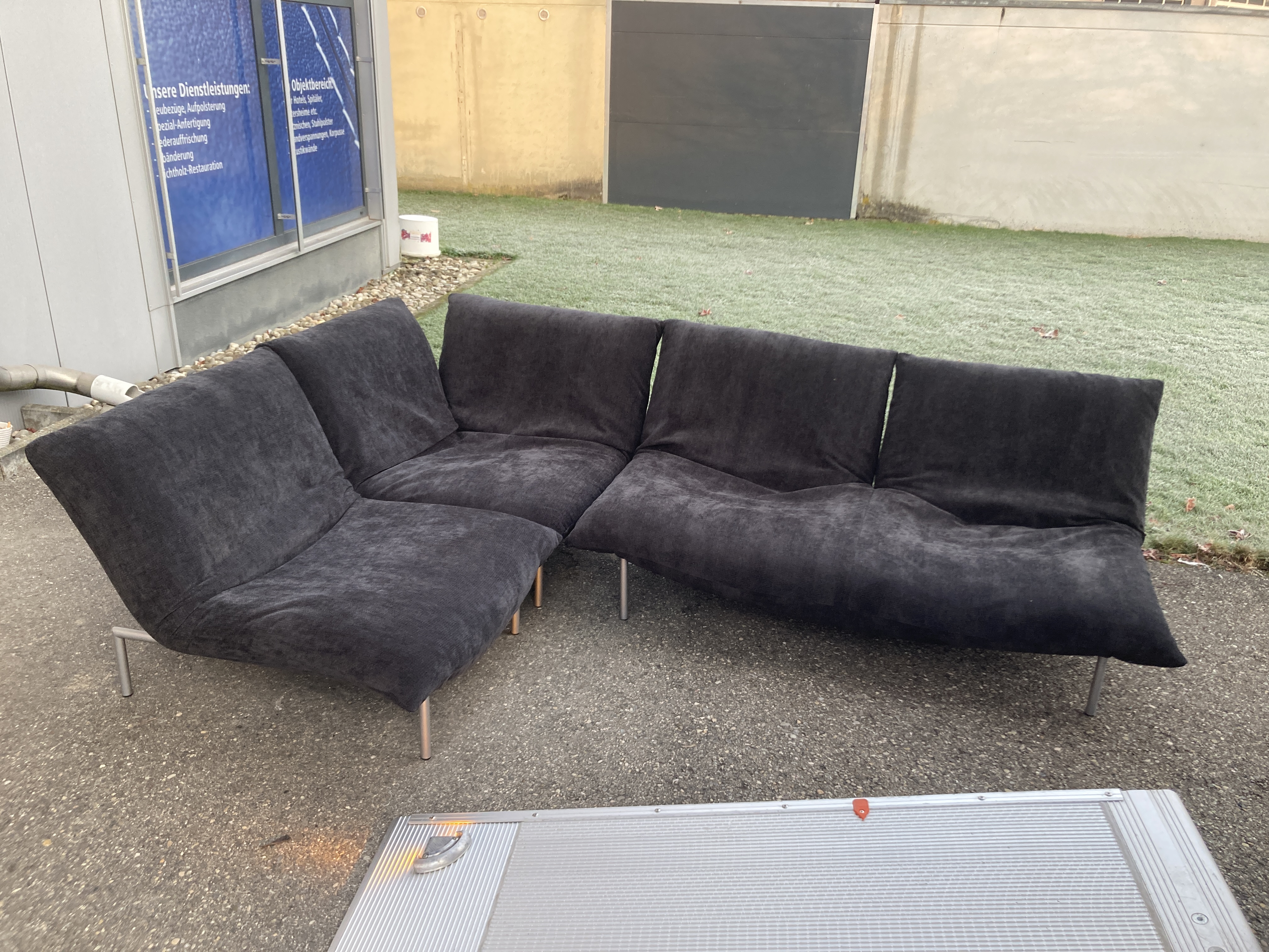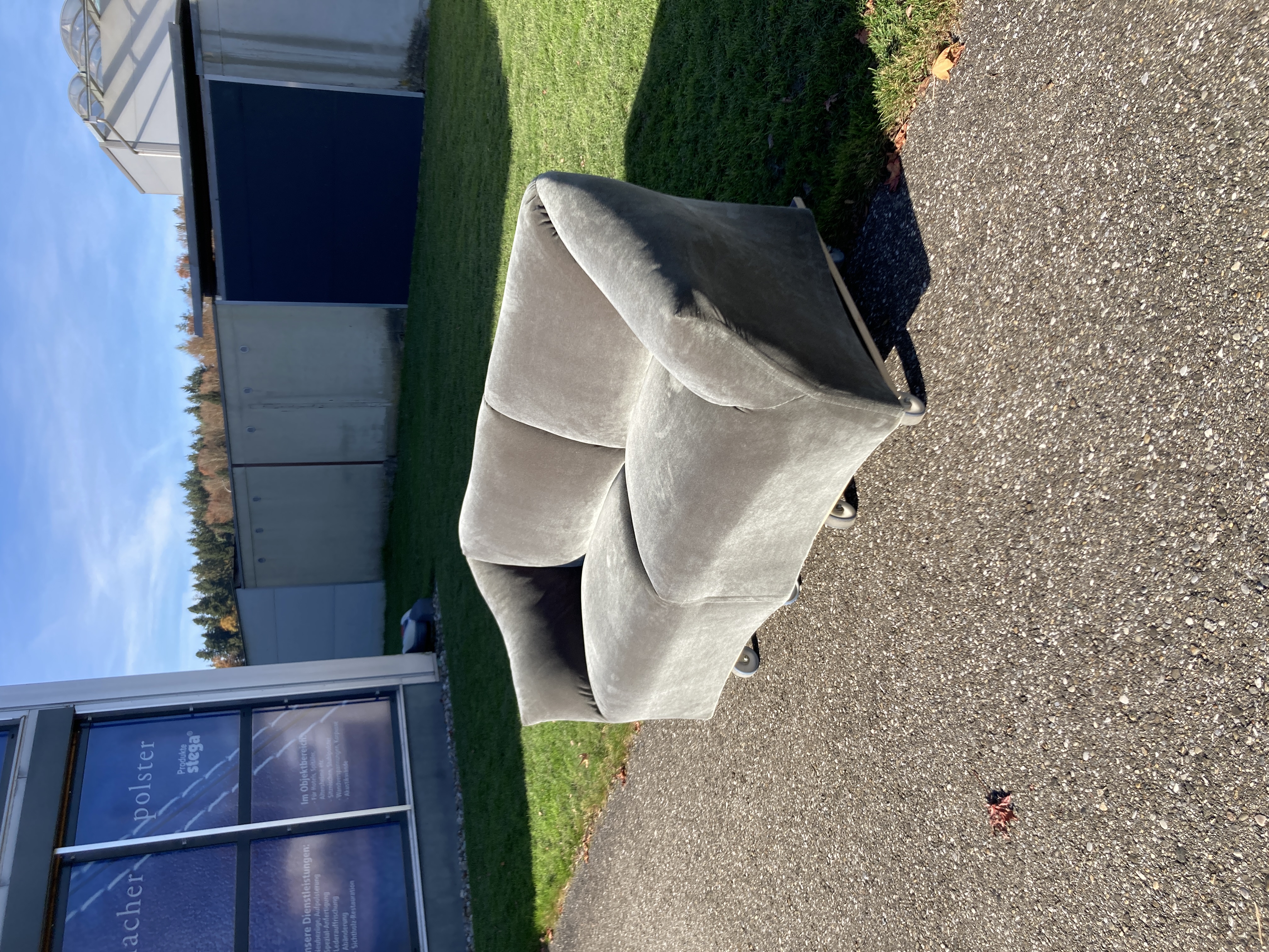 Referenzbericht: Neu-Polstern und Neu-Beziehen eines B&B Italia Sofas Tentazione von Mario Bellini in Samtstoff Karat in Grau