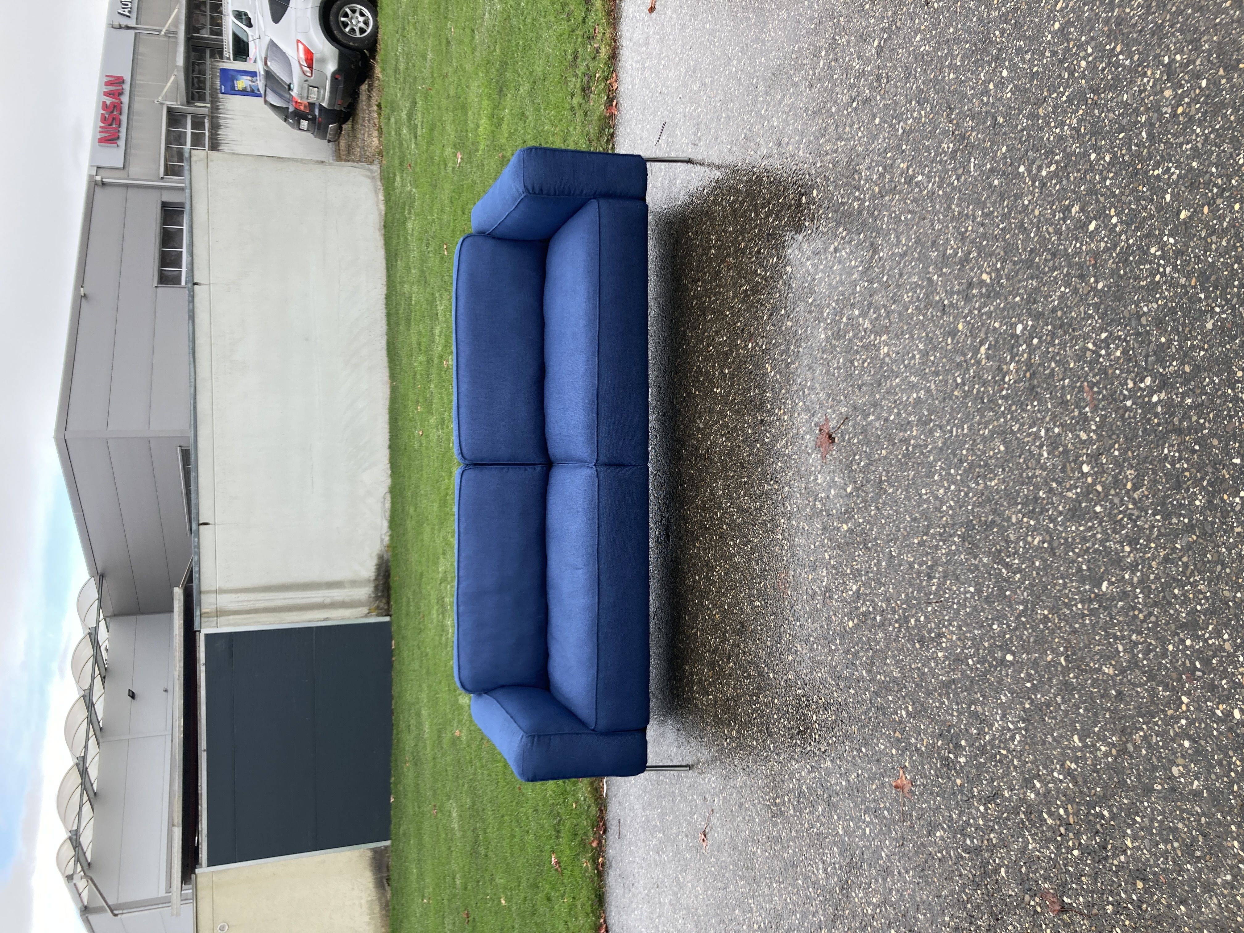 Referenzbericht: Aufpolstern und Neu-Beziehen eines Rolf Benz Bacio Sofas in blauem Stoff