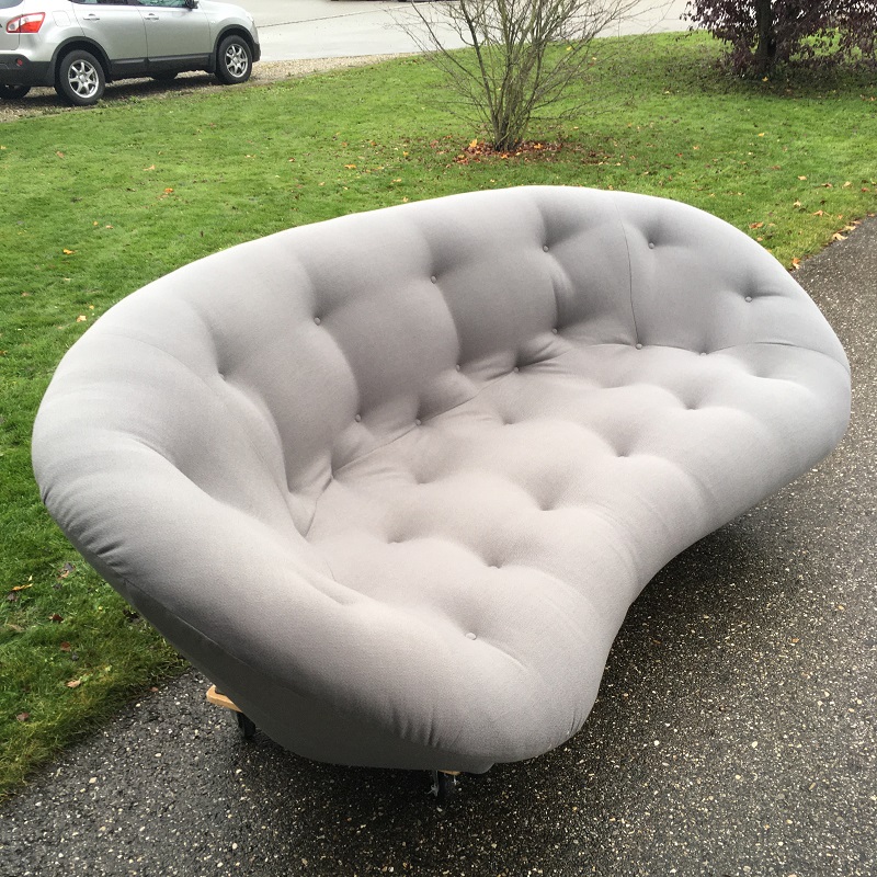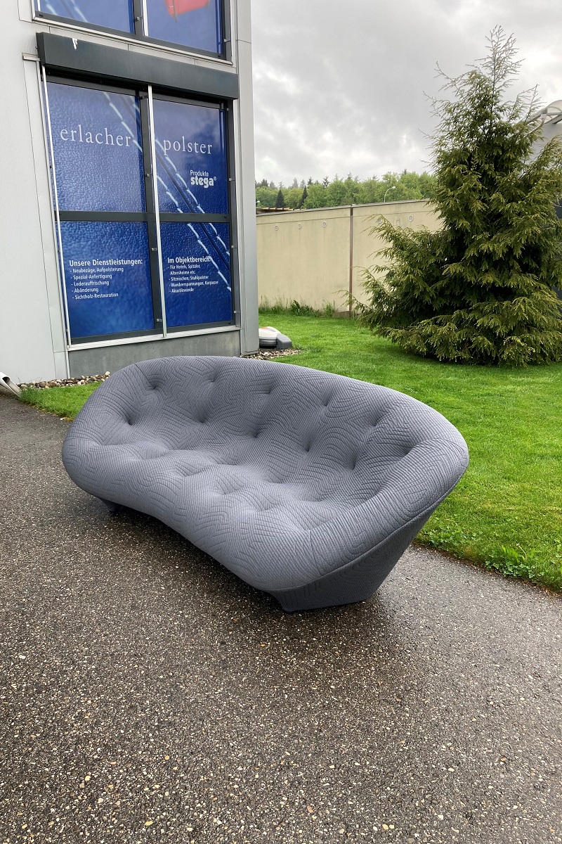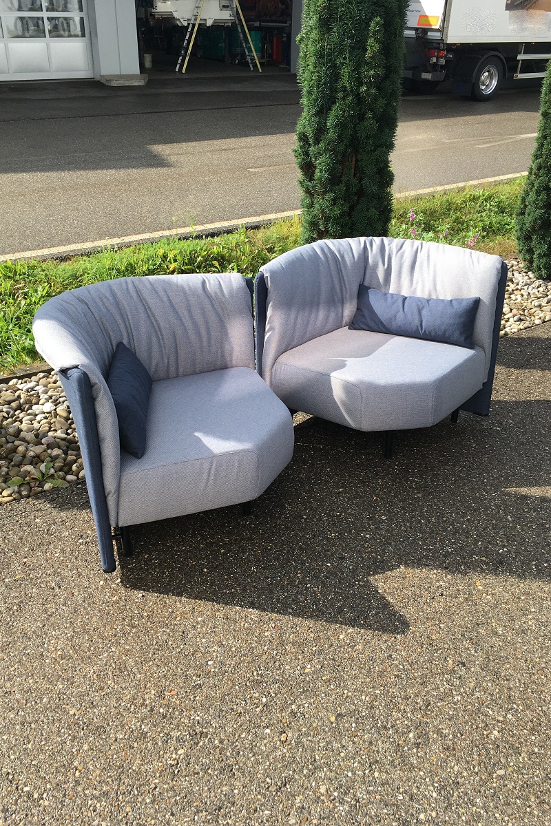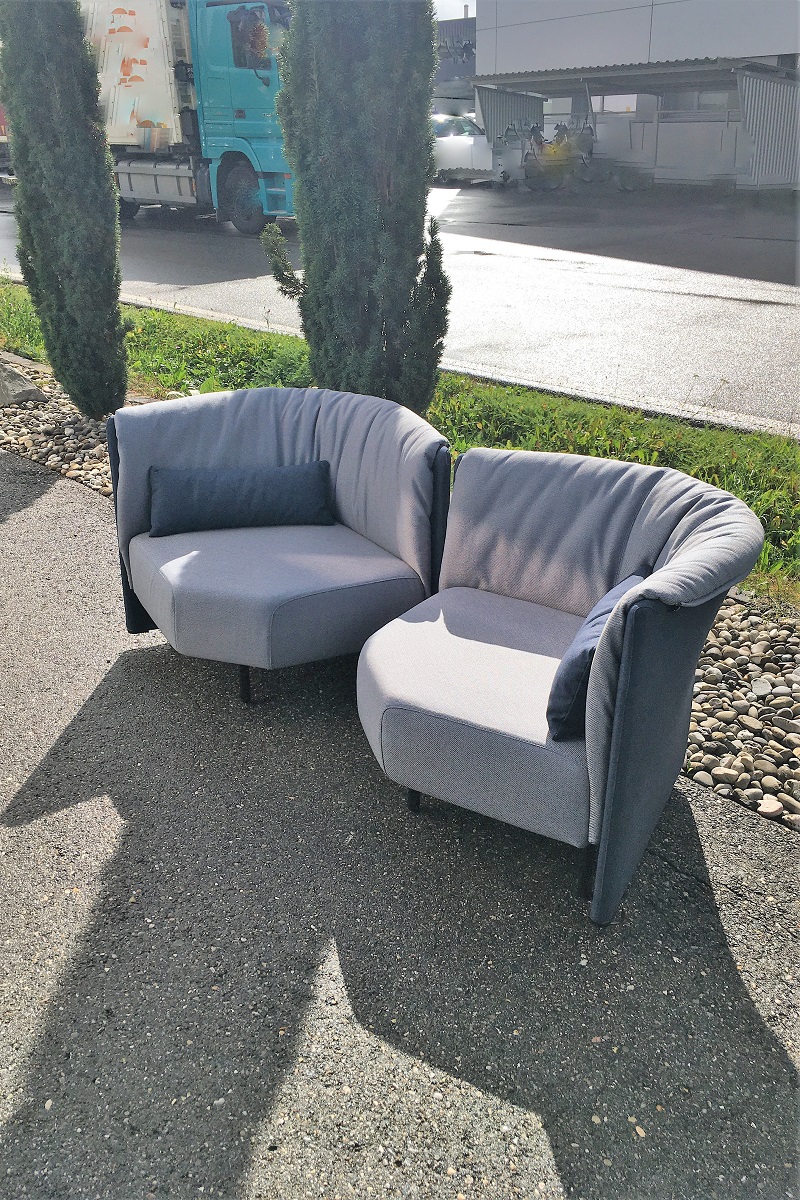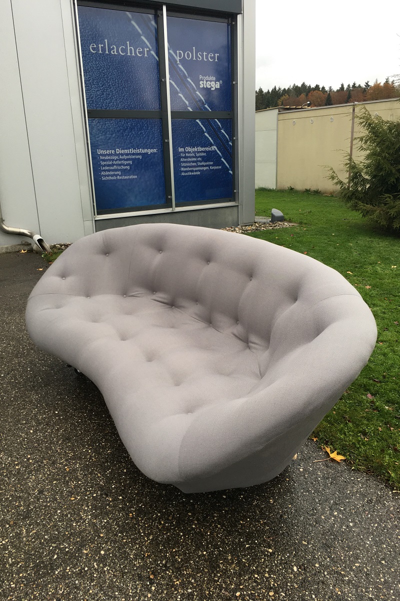 PLOUM ist ein super soft Polstermöbel aus dem Hause Ligne Roset. Es passt wegen seiner weichen, runden Formgebung überall dazu. Jedoch eignen sich für ein Neubezug nur eine Handvoll Stoffe, um dieses Sofa wieder flott zu machen. Wir können auch Originalstoffe von Ligne Roset verwenden, den Bezug könne Sie bei jedem Ligne Roset händler selber einkaufen oder und diesen Aufgrag zuschieben, wir organisieren das problemlos für Sie. Danach ziehen wir für wenig Geld den Originalbezug auf Ihr Sofa. Das 1. Ploum Sofa haben wir für einen Kunden aus Bern in einem grauen Stoff von Création Baumann AG aufgefrischt. Das 2. in einem Originalstoff von Ligne Roset.