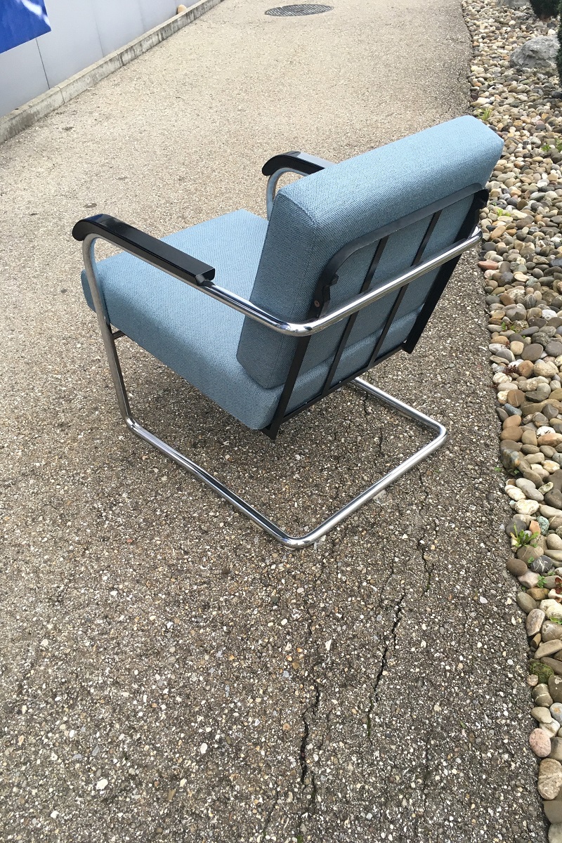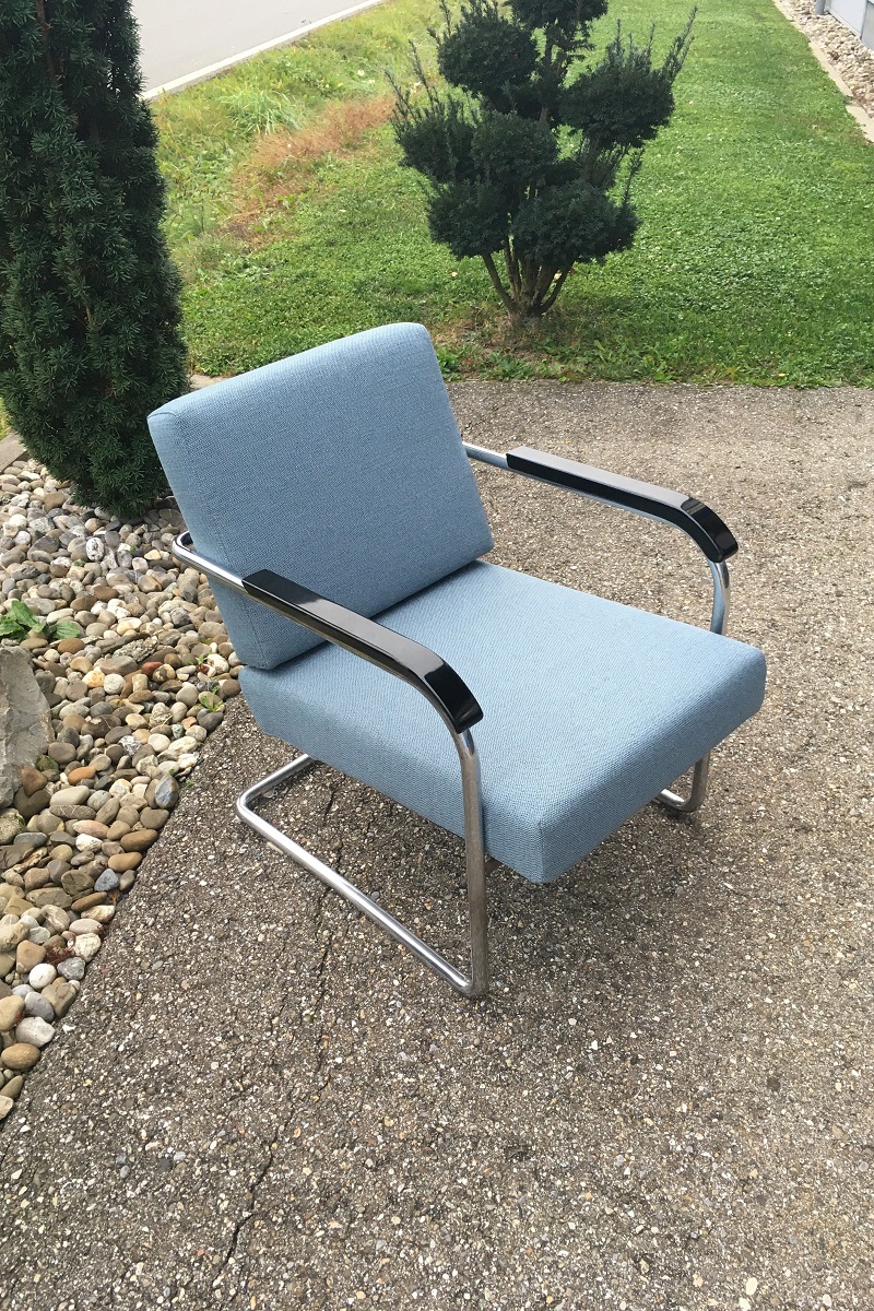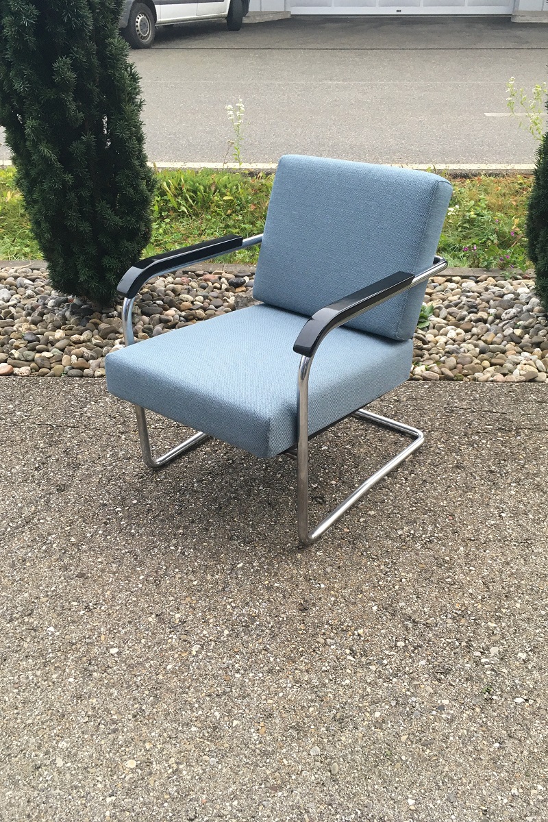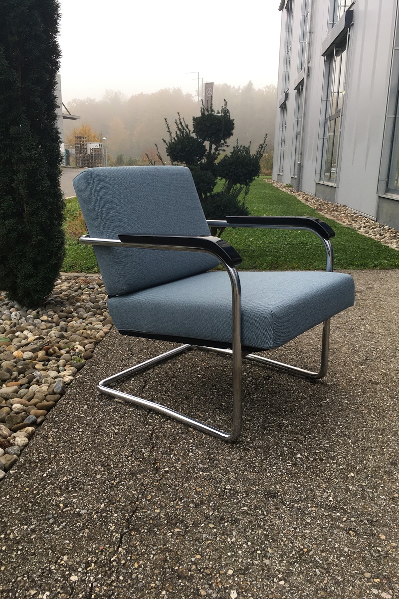 Diese Sessel von Max Moser für Embru, Modell Nr. 1435 sind verstellbar und trotzdem relativ einfach hergestellt. Das eignet sich bestens zum neu überziehen und allenfalls im voraus aufzupolstern. Dieses Stück haben wir für einen Kunden aus Thun in einem Stoff von JAB neu überziehen dürfen.