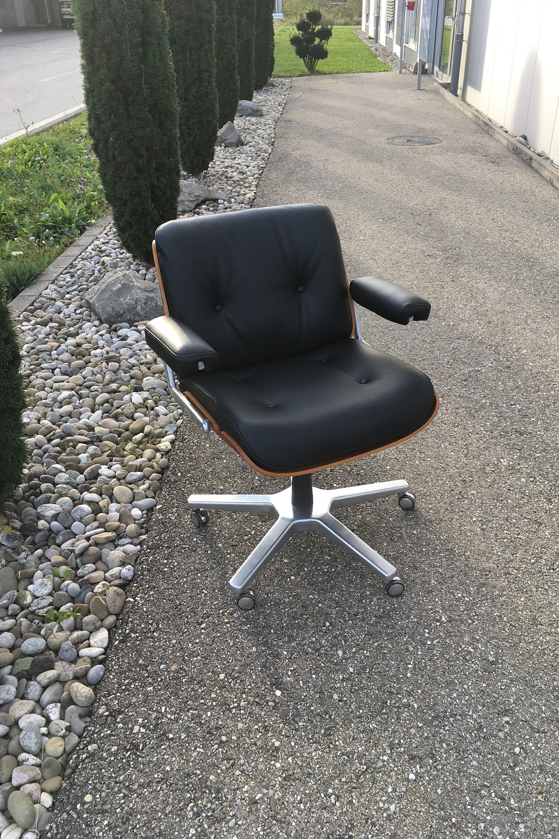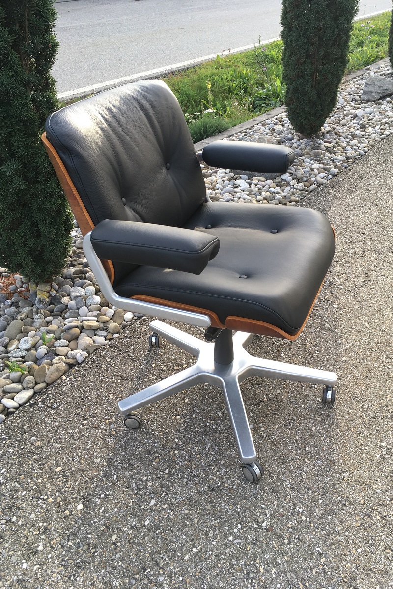 Der Giroflex Bürostuhl Stoll Pasal Chair ist auch ein Klassiker. Das Design stammt von Karl Dittert in den 1960er Jahre. Nicht zu verachten ist der Sitzkomfort dieses Lounge Sessel oder eben Bürostuhles. Rundum ein Fauteuil also, wo sich eine Auffrischung in jedem Fall lohnt. Bei uns wird immer auf einen möglichst 100%-igen Konstruktions- und Designerhalt geachtet, also alles nach Originalschablonen hergestellt. Anpassungen werden nur gegen ausdrücklichen Kundenwunsch gemacht. Solche sind verständlicherweise sehr selten gewünscht.