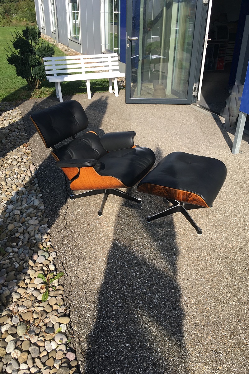 Der Eames Lounge Chair von Vitra ist schon lange Zeit ein Klassiker. Das Design stammt von Charles & Ray Eames im Jahre 1956. Nicht zu verachten ist der Sitzkomfort dieser Lounge Sessel. Rundum ein Fauteuil also, wo sich eine Auffrischung in jedem Fall lohnt. Bei uns wird immer auf einen möglichst 100%-igen Konstruktions- und Designerhalt geachtet, also alles nach Originalschablonen hergestellt. Anpassungen werden nur gegen ausdrücklichen Kundenwunsch gemacht.
