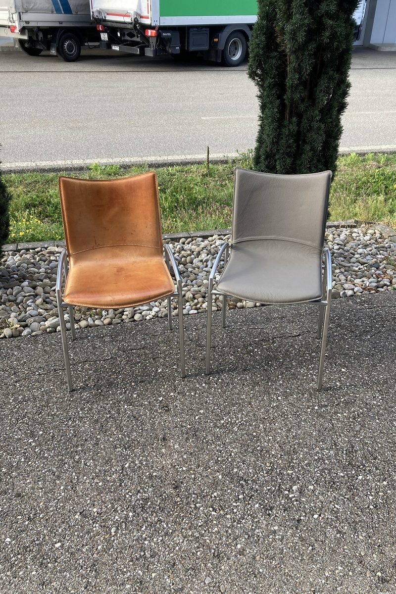 Die beiden Stühle Boculino und Dining von Team by Wellis (ehemals Stega® und aktuell De Sede) sind quasi aus unserem Vaterhaus, somit kennen wir die Modelle entsprechend gut. Da wir sehr viele Konfektionsschablonen auch von anderen bekannten Designermöbel haben, können wir Ihnen sehr interessante Offerten zustellen. Denn bei den hochwertigen Polstermöbel lohnt sich das Auffrischen immer, auch für solche, die noch neu gekauft werden können. Auffrischen ist in der Regel ca. 50% günstiger als ein Neukauf, dies sagt unsere grosse Erfahrung.