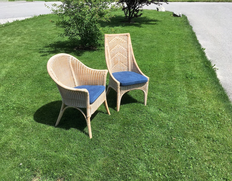 Für diese beiden und 6 weitere Rattansessel und Stühle von Lauser, Modell Arena, durften wir für unsere Kunden aus dem Kanton Bern neue Sitzkissen anfertigen und neu beziehen in Alcantata® 6440 powder blue. Diese wertvollen Rattanmöbel stehen im Wohnraum und müssen daher besonders bequem sein. Auf Kundenwunsch haben wir einzelne Sitzkissen mit Bombierungseinlage versehen, dies erhöht der Komfort und das Sitzgefühl. Vielen Dank nochmal, dass wir diesen Auftrag ausführen durften.