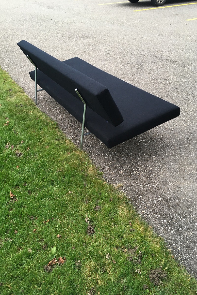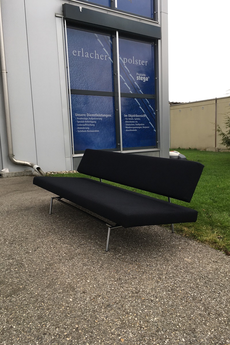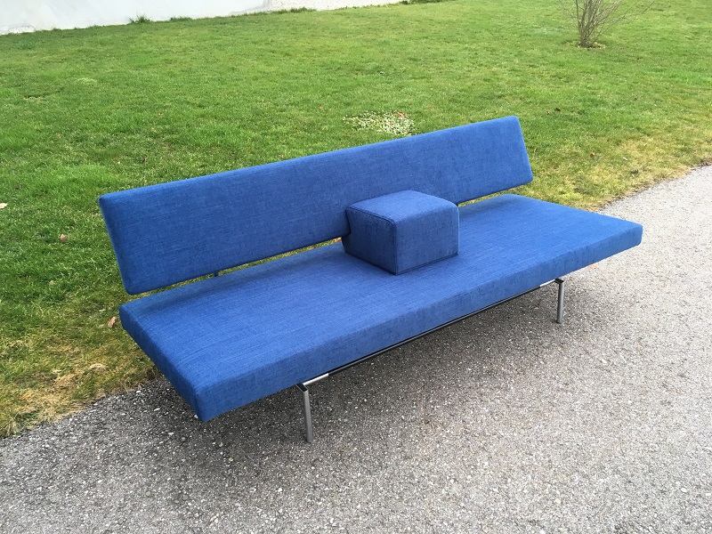 Martin Visser ist der Designer der Schlafcouch BR 02.7. Diese Couch stammt aus den späten 50er Jahren. 1988 wurde die lose Armlehne BA 02 der Couch hinzugefügt. Mit ein paar Handgriffen kann die Couch in eine Schlaufcouch für eine Person umgewandelt werden. Sie können die Couch und die Armlehnen in jedem gewünschten Stoff oder Leder neu beziehen lassen. Durch die straffen Formen des Entwurfs ist ein elastischer Stoff aber am besten geeignet. Quelle: www.spectrumdesign.nl