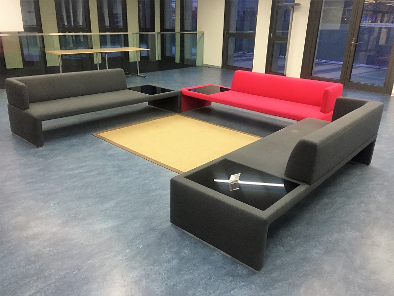 Objekt Feusi Bildungszentrum in Bern. Unsere Polsterer beziehen hier Sofas und Sessel vom Italienischen Objektmöbel Hersteller Tacchini, Modell Labanca, in unserer Polsterei aus dem Kanton Bern neu. Dies im Spezialstoff Nanova von Höpke Landenberg mit 5 Jahren Garantie. Rundungen, Keder oder spezielle Formen und Materialien sind für uns immer eine Herausforderung, aber gleichzeitig bedeuten diese für unsere Profis Alltag, der mit grossem Elan immer neu angegangen wird. Deshalb können wir unseren Architekten und Bauherren praktisch alle Wünsche erfüllen.
